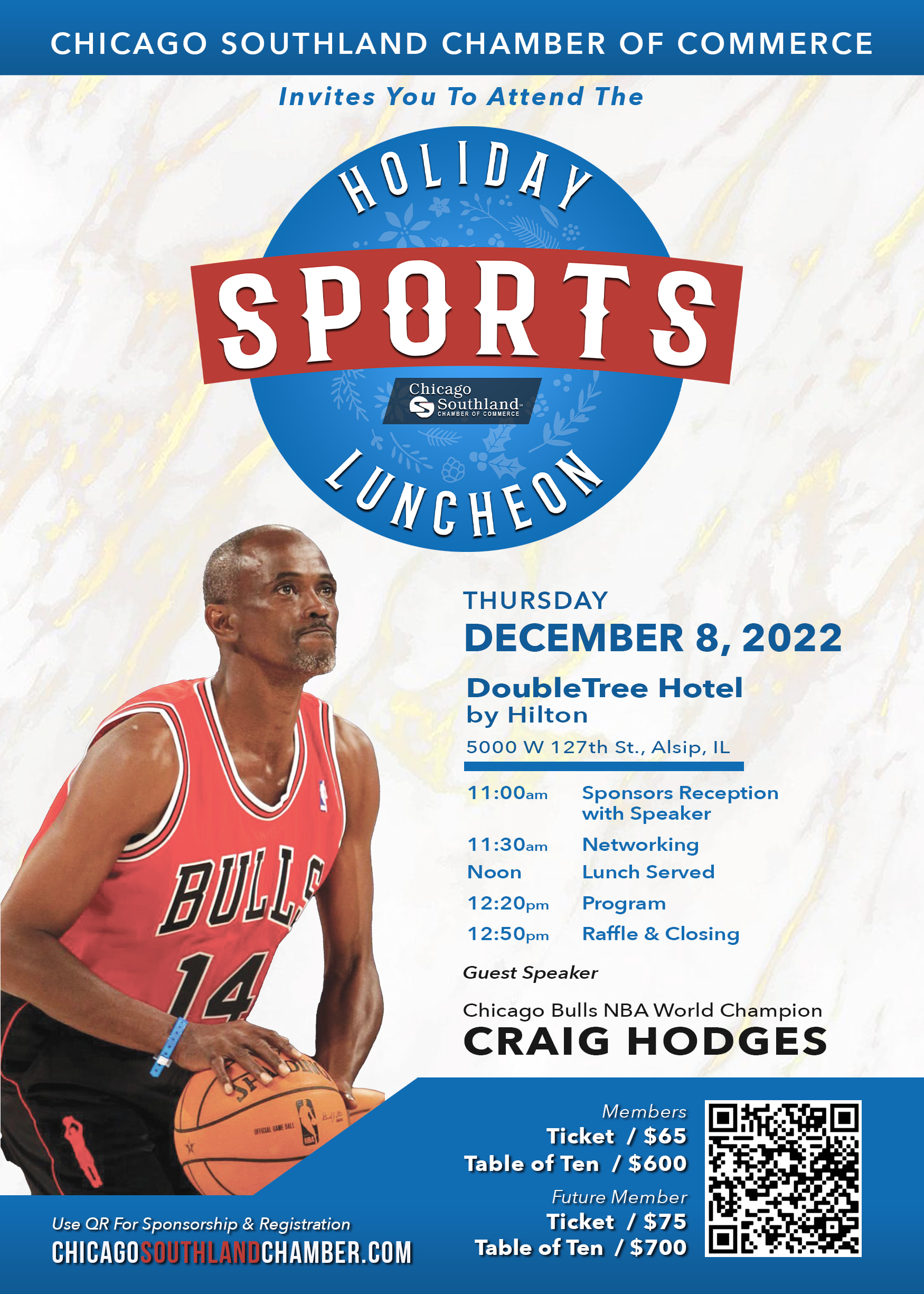 We welcome members and non-members to join us at our annual signature event, the Holiday Sports Luncheon! You are cordially invited to this premier holiday networking event in the Chicago Southland.