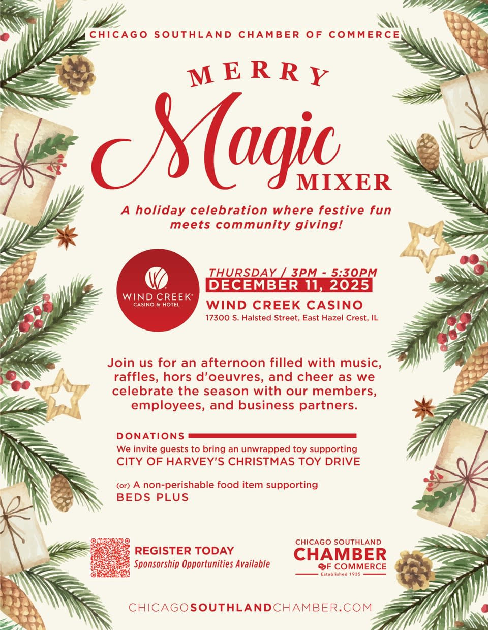 The Chicago Southland Chamber of Commerce invites you to our Merry Magic Mixer ~ a holiday celebration where festive fun meets community giving!