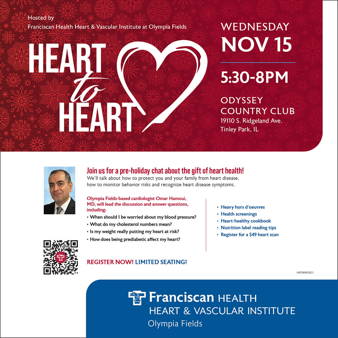Featured speaker, Olympia Fields based cardiologist Omar Hamoui, MD, will lead the discussion and answer questions, including:
