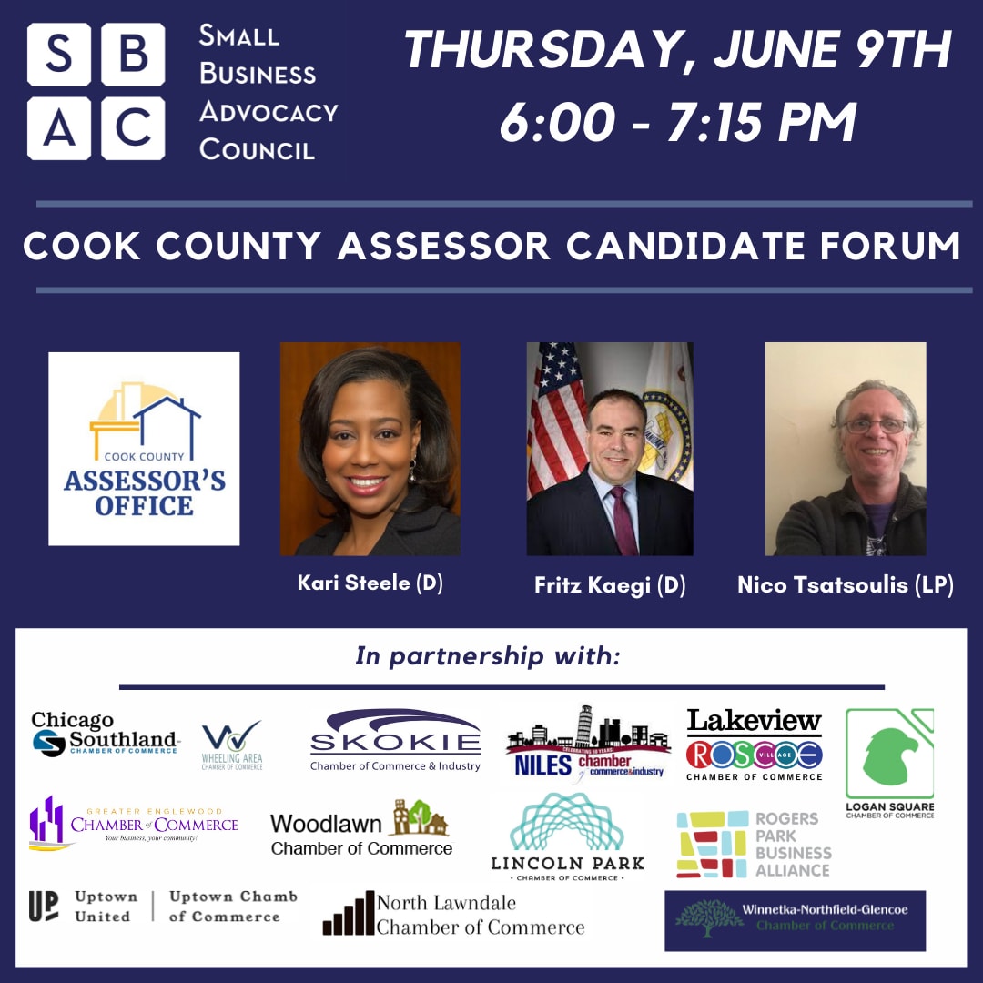 SBAC Special Event: Cook County Assessor Candidate Forum June 9th via Zoom.